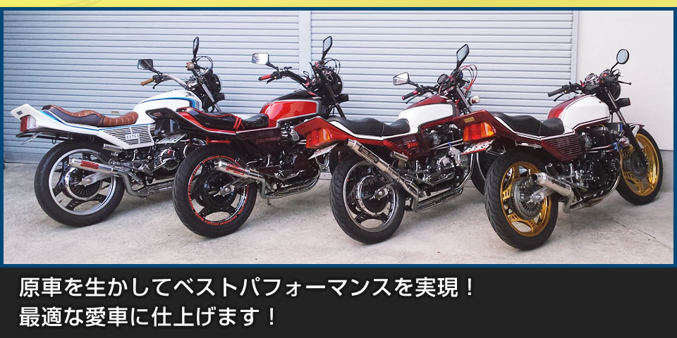 ベース車両もご用意いたしますので、ライトカスタムからフルカスタムまでお客様のご希望に合わせて制作いたします。お客様の車両を一台一台丁寧に作業を行い、安心して乗れる様にしっかりと整備いたします。他店で購入したバイクも修理対応を受け付けております。